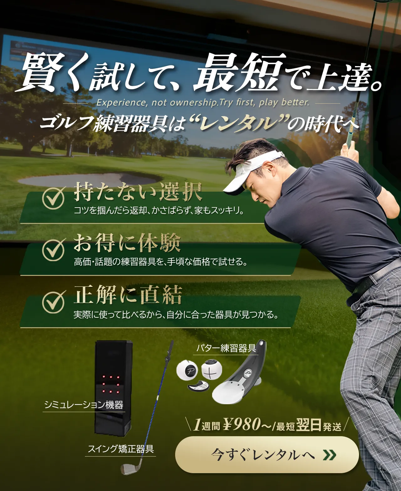 シミュレーション機器は高価で購入に踏み切れずにいましたが、レンタルで1ヶ月使って弾道データを確認。課題が明確になり、“必要な時だけ借りる”で十分だと確信しました。(50代男性|平均90〜100|Square Golf Home Editor)
