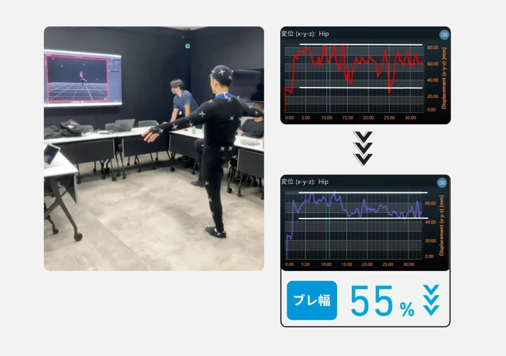 • 体の軸のブレが約55%軽減(片足立ち30秒の計測で確認)