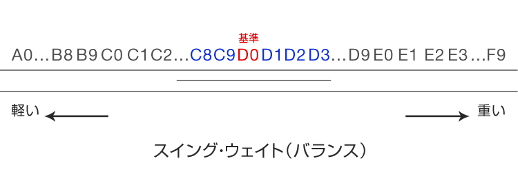 スイングウェイトは、A〜Gまで続くアルファベット順の区分スケールで、