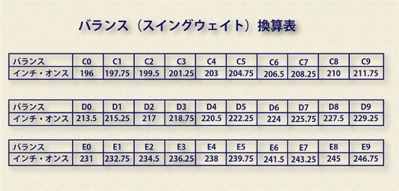 クラブをある支点で支えたときに、どれだけヘッド側が重く感じるかを段階的に表したものです。