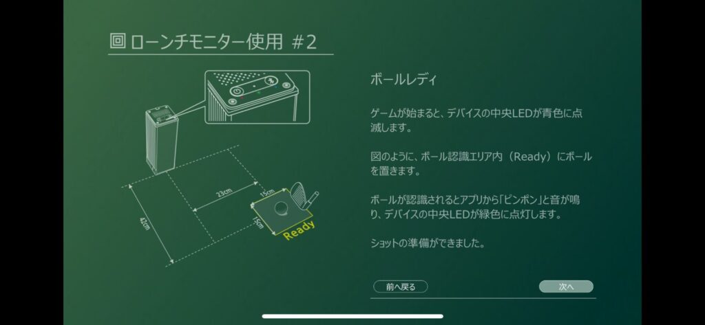 最後は、センサーがボールを認知し、LEDライトが緑色になればOKです。