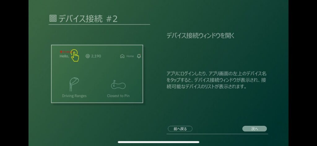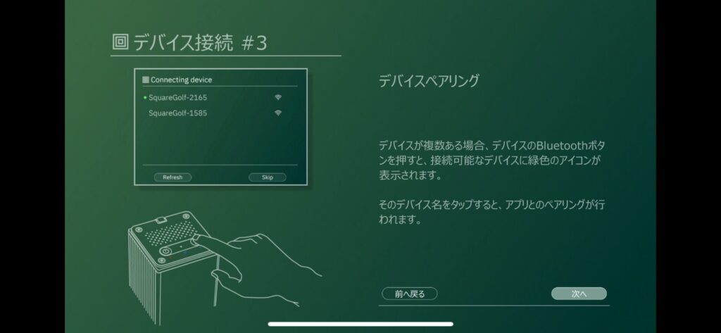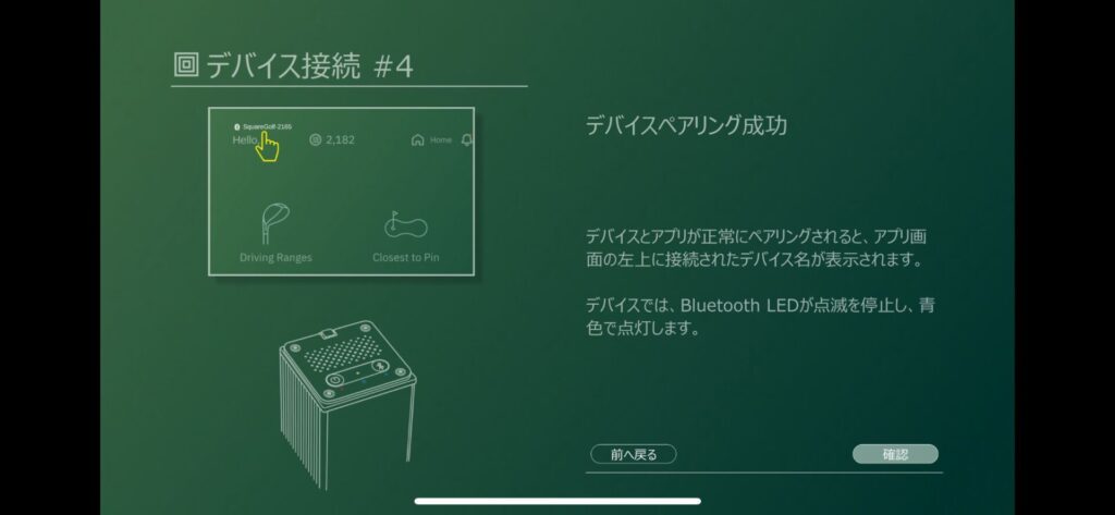 ここで、デバイス番号「SquareGolf-F58A」が出るので、