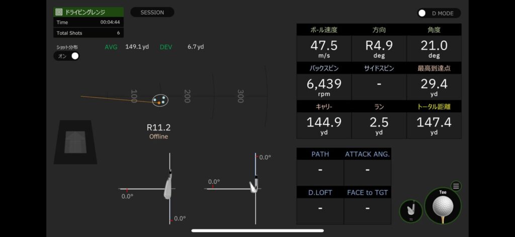 ボールの位置が、ローンチモニターと違い、機器の目の前に置きます。