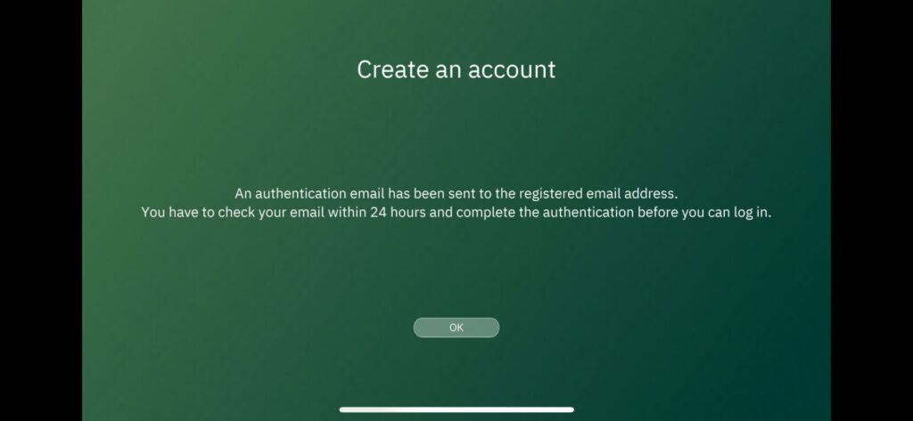 アカウント情報を入力すると、登録したメールアドレスに認証メールが届きます。