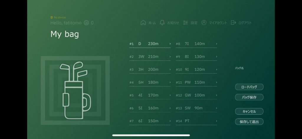 自分自身が使っているクラブの種類と飛距離を入力します。